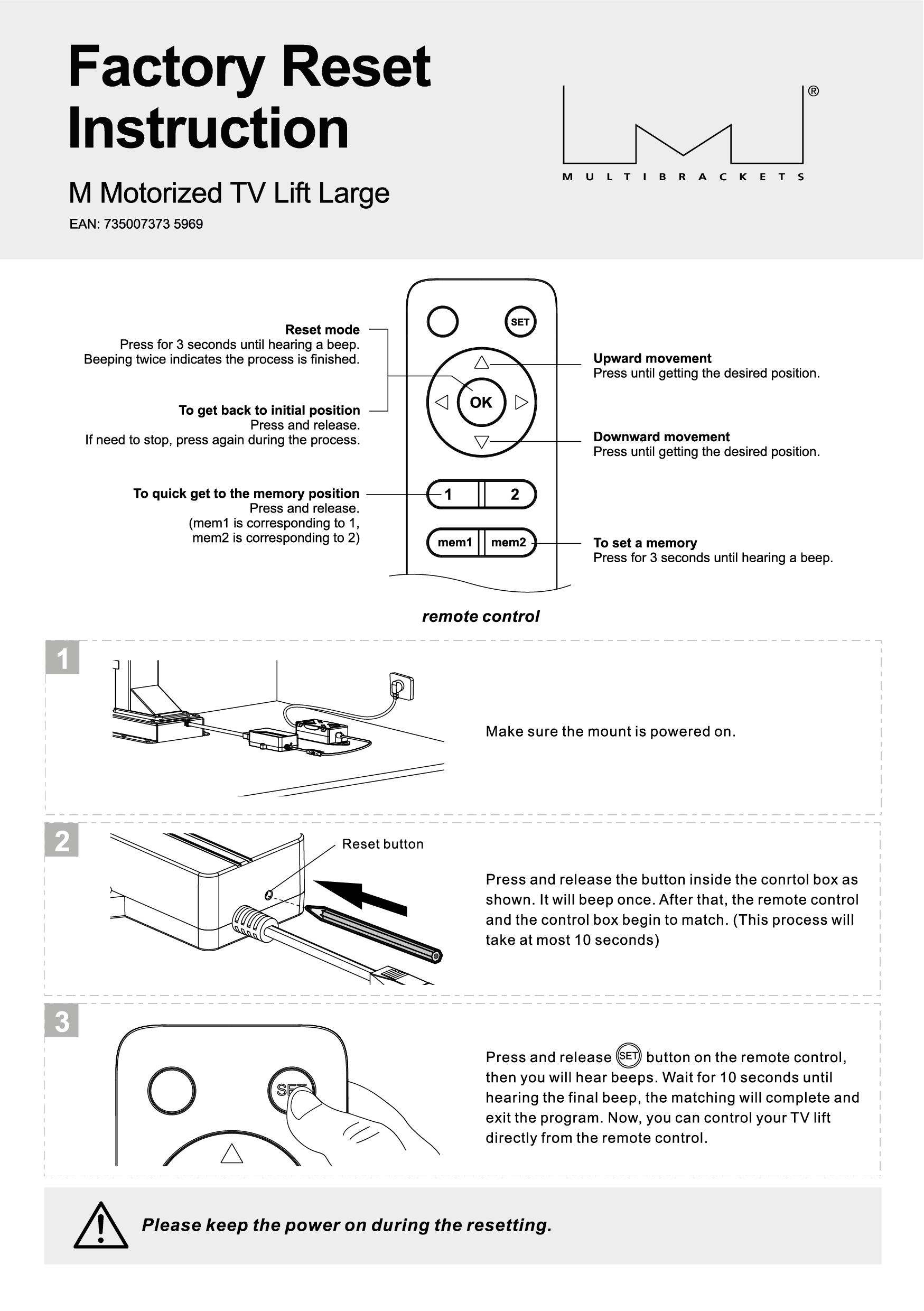 If you encounter problems with your TV lift, a restart of the lift function may be required. Always try to reboot both the lift and the box first.