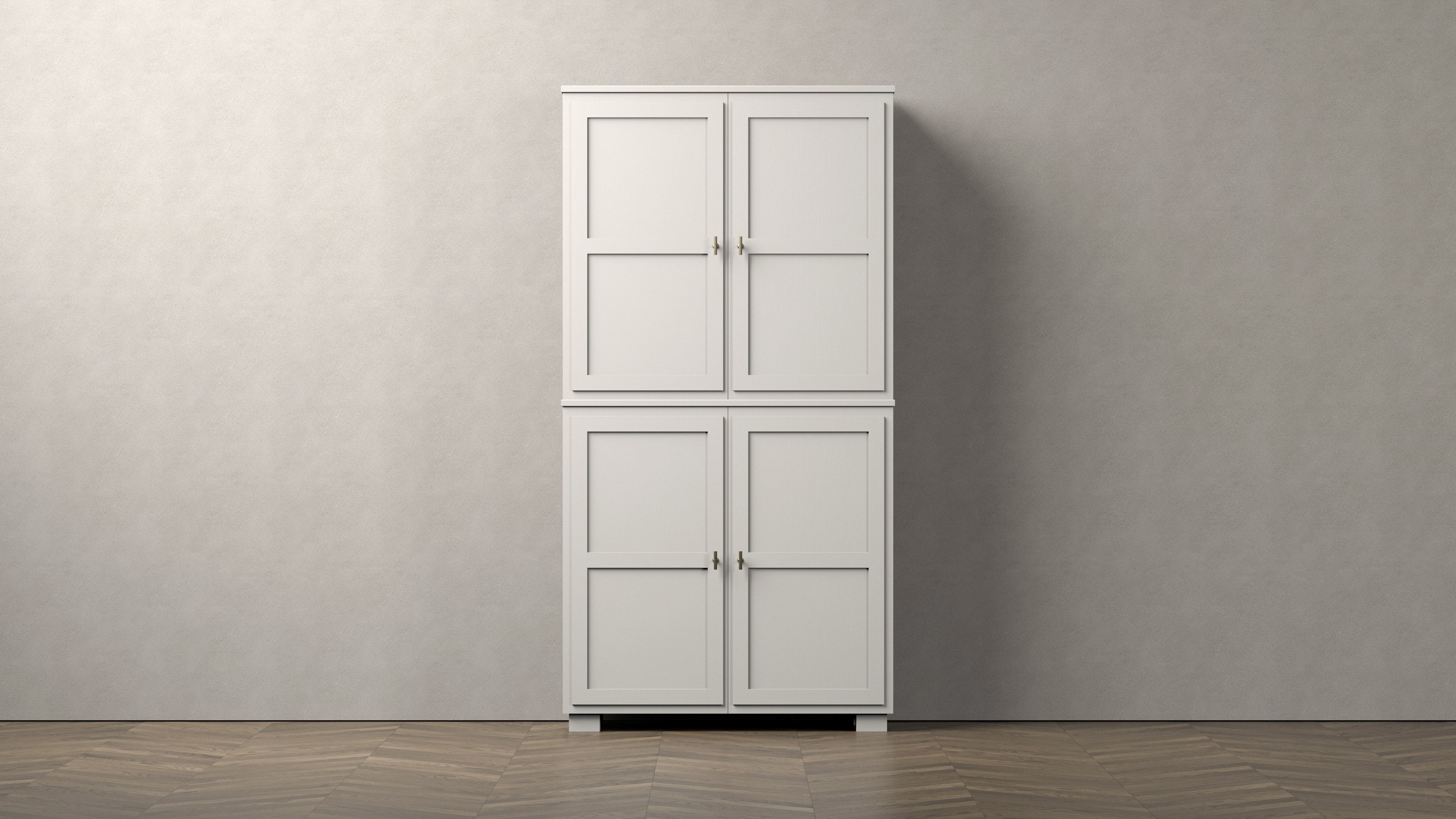 Camden Display cabinet combines style and functionality with its elegant design. Consisting of a sideboard with two doors, a drawer and a shelf with wooden doors as a base, as well as an upper sideboard with two wooden doors and two drawers inside, it offers generous storage. The entire piece of furniture is hand painted with a textured finish and is available in the colors White and Black. Perfect for creating a uniform and stylish interior.