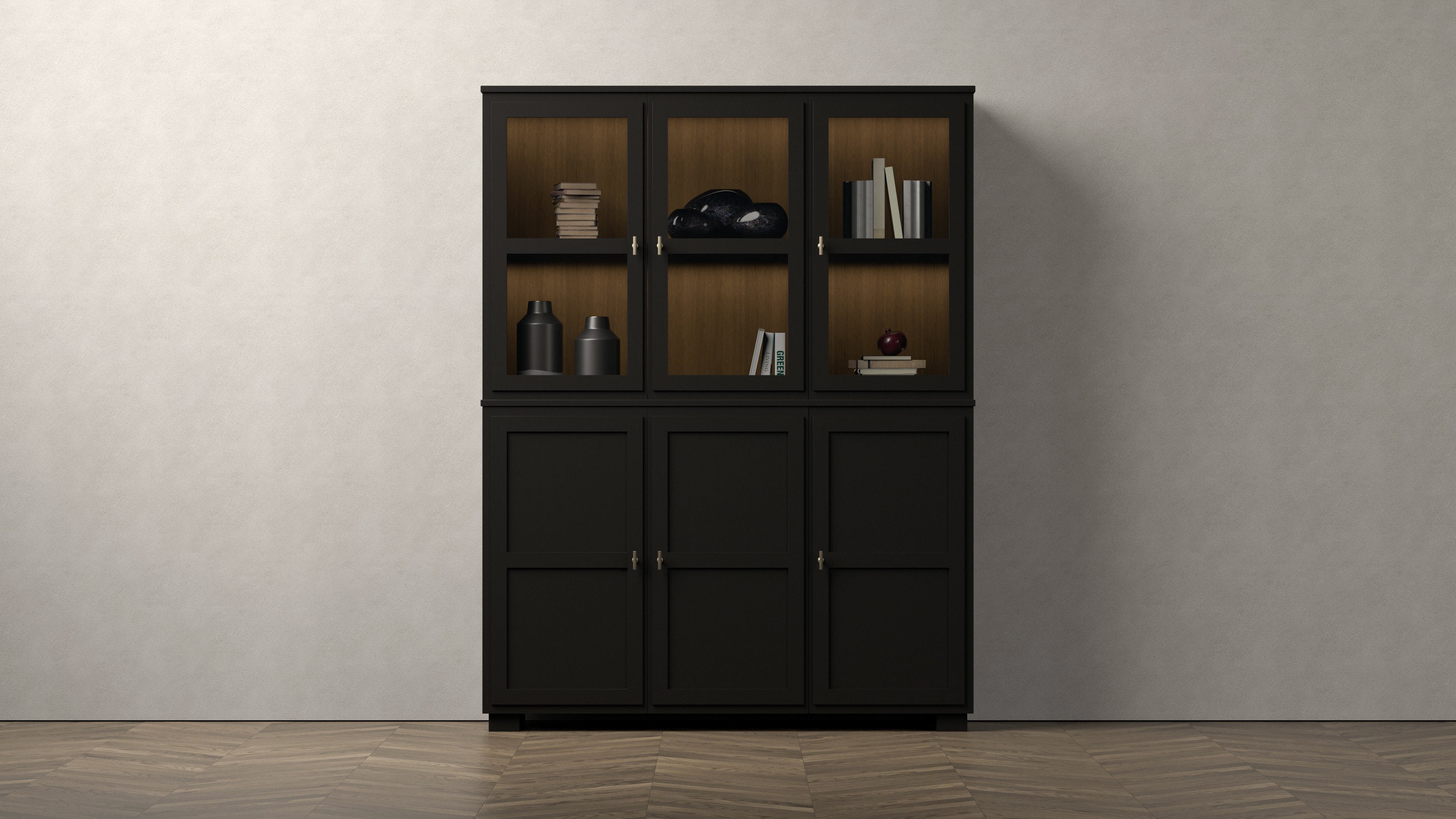 Camden Display cabinet combines style and functionality with its elegant design. The lower part has three wooden doors and offers two spaces, where each space has two shelves and a drawer for smart storage. The upper part has three glass doors that provide a beautiful view of the contents and includes a shelf in each space. The back panel and upper shelves have integrated lighting that highlights your favorite items and creates an inviting atmosphere. The furniture is available in the colors White and Black, which gives your home a stylish and uniform feel.
