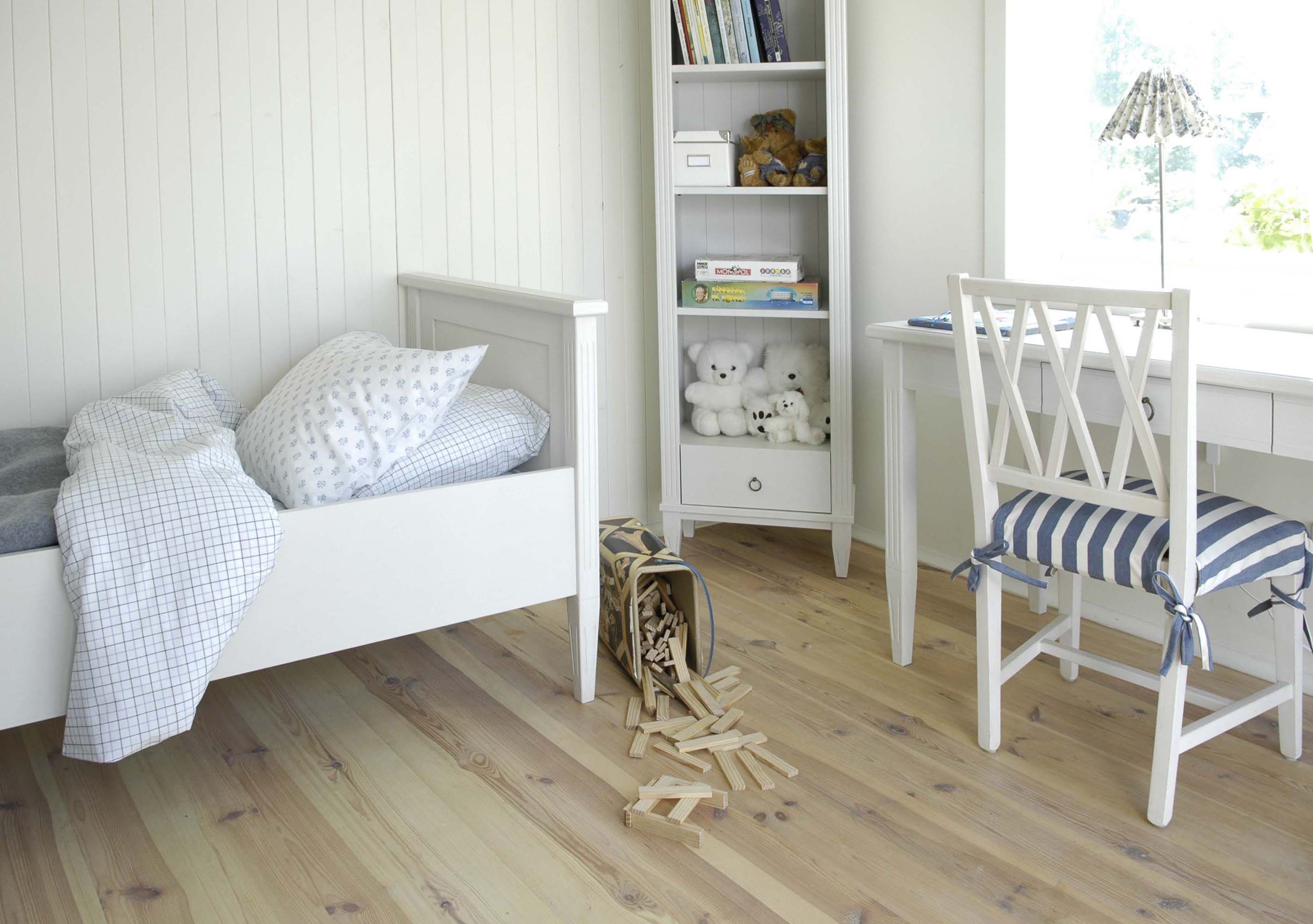 In the Stockholm furniture series, there is some classic furniture in an older style that fits both old houses and apartments. The Englesson headboard is available in two models with or without legs, in the size 180 cm and only in the colour Whitewash.