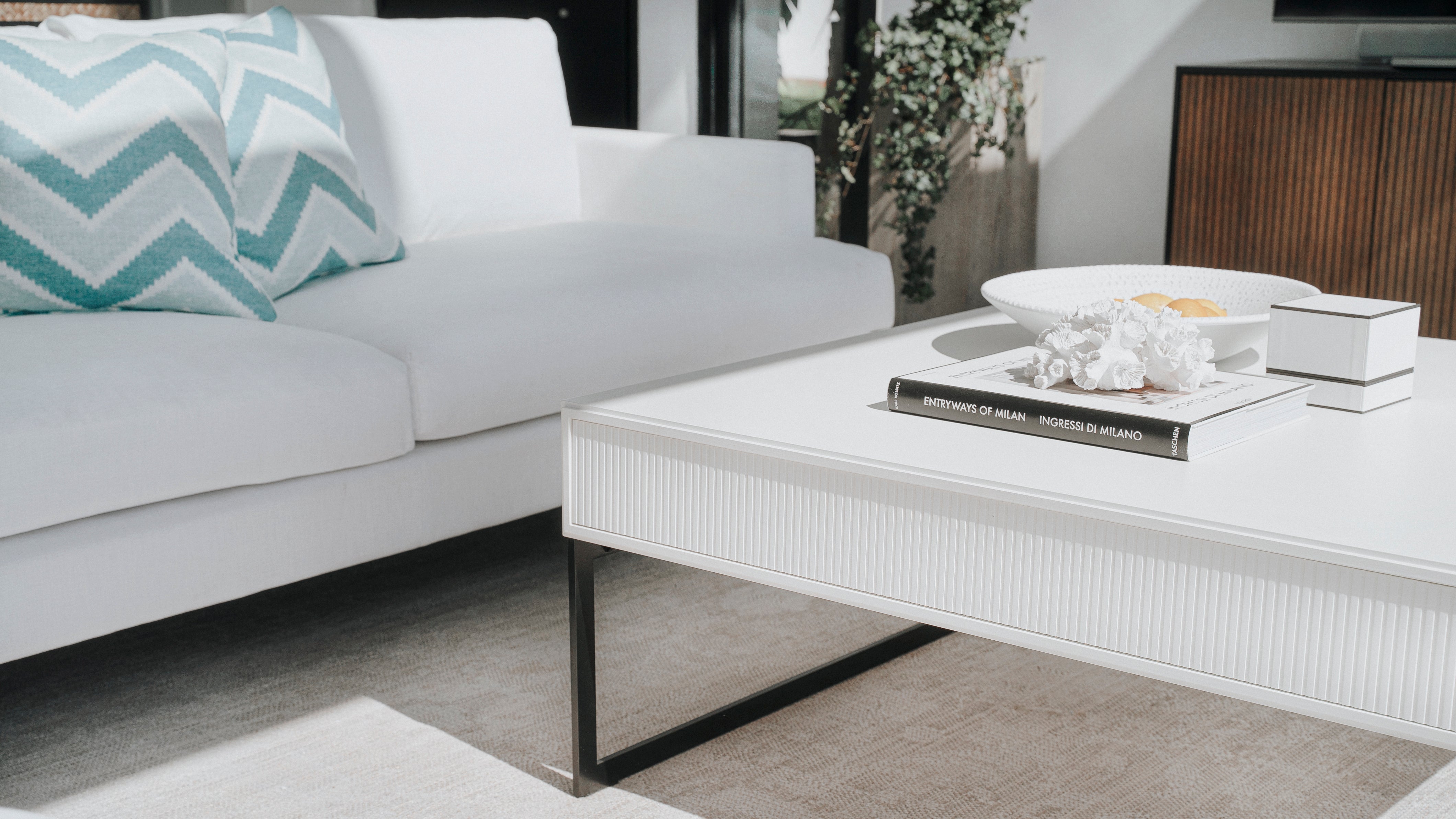The Line rectangular coffee table, with its elegant modern design, adds a touch of sophistication to any living room. On the long sides, there is a hatch that can be opened and used for storage of items you want to conceal.