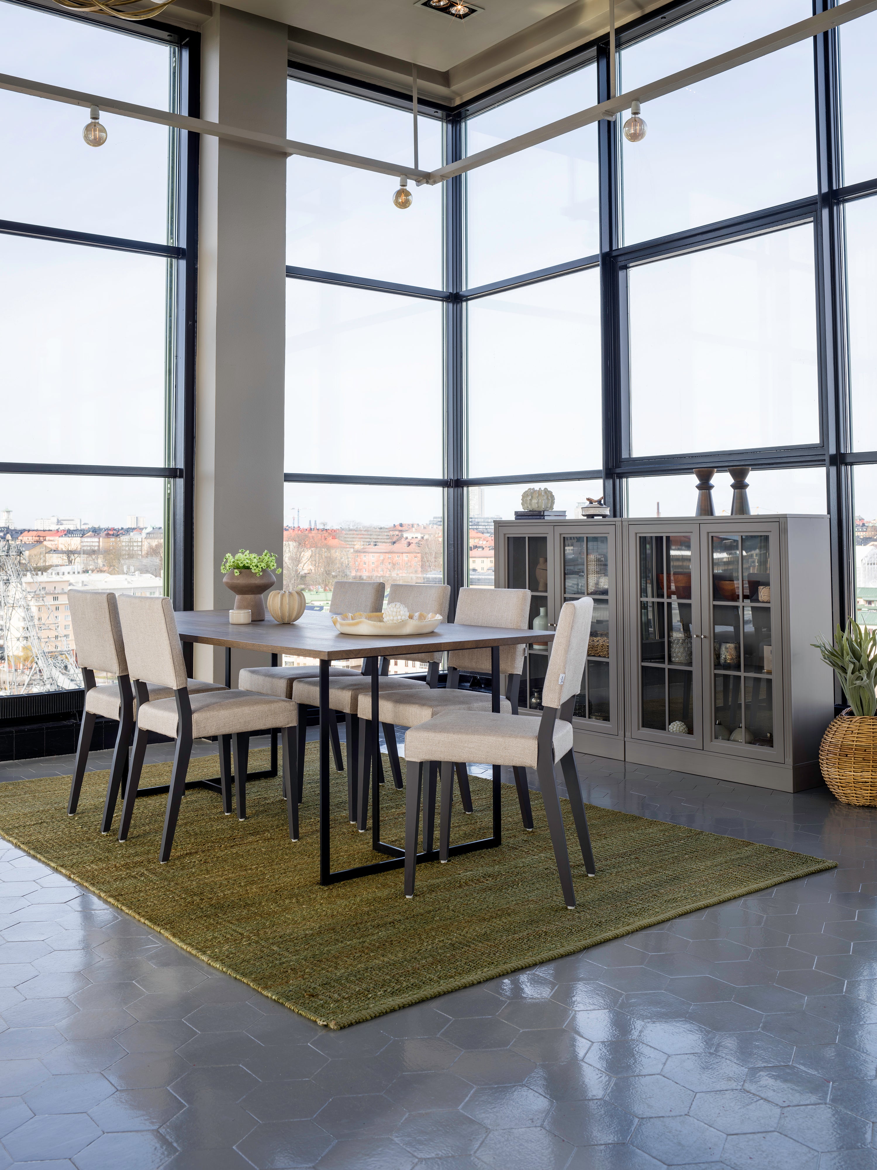 A very tasteful dining table in the Square series. Choose between a discreet leg frame in black metal or the bolder option of silver-grey metal. The table's top is made of solid oak, available in the colour choices of Black Oak or Burned Walnut