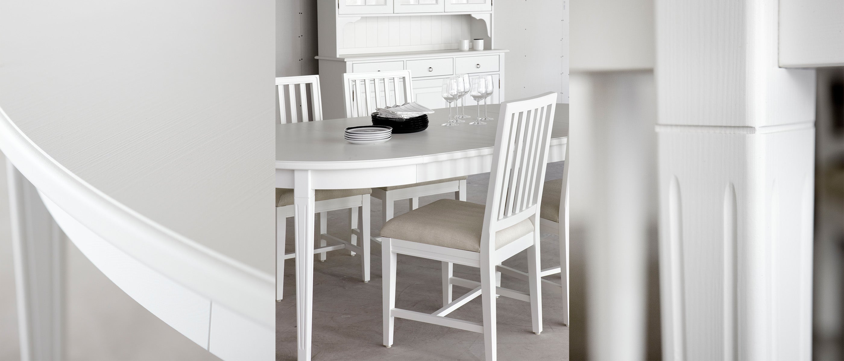 Stockholm 2.0 dining table comes with 2 extension leaves, each measuring 45 cm, which can be conveniently stored within the table when not in use. This allows you to easily bring them out and extend the table up to 290 cm when you have guests. Feel free to complement it with Classic, Leksand, Stockholm, Hampton, Utö, or Brooklyn chairs, available in the same finishes as the table in Whitewash, Grey, and Black.