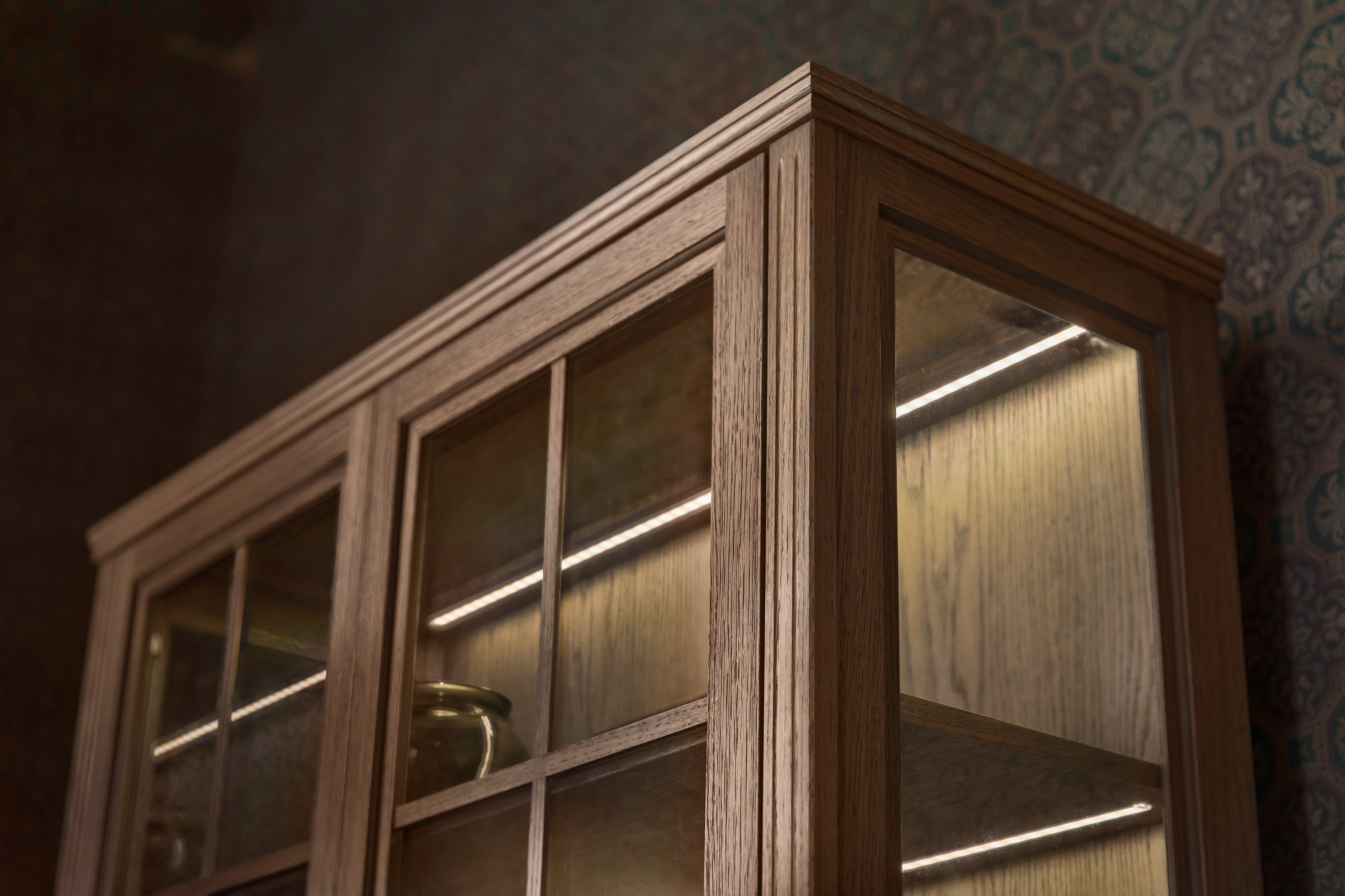 With a subtle combination of classic craftsmanship and modern elements, the Ekvitrinen is equipped with integrated LED lighting that illuminates your interior. The burned walnut finish gives the cabinet a natural and warm feel, while this display cabinet is created to stand up to the trends of the time and become a reliable companion in your home.