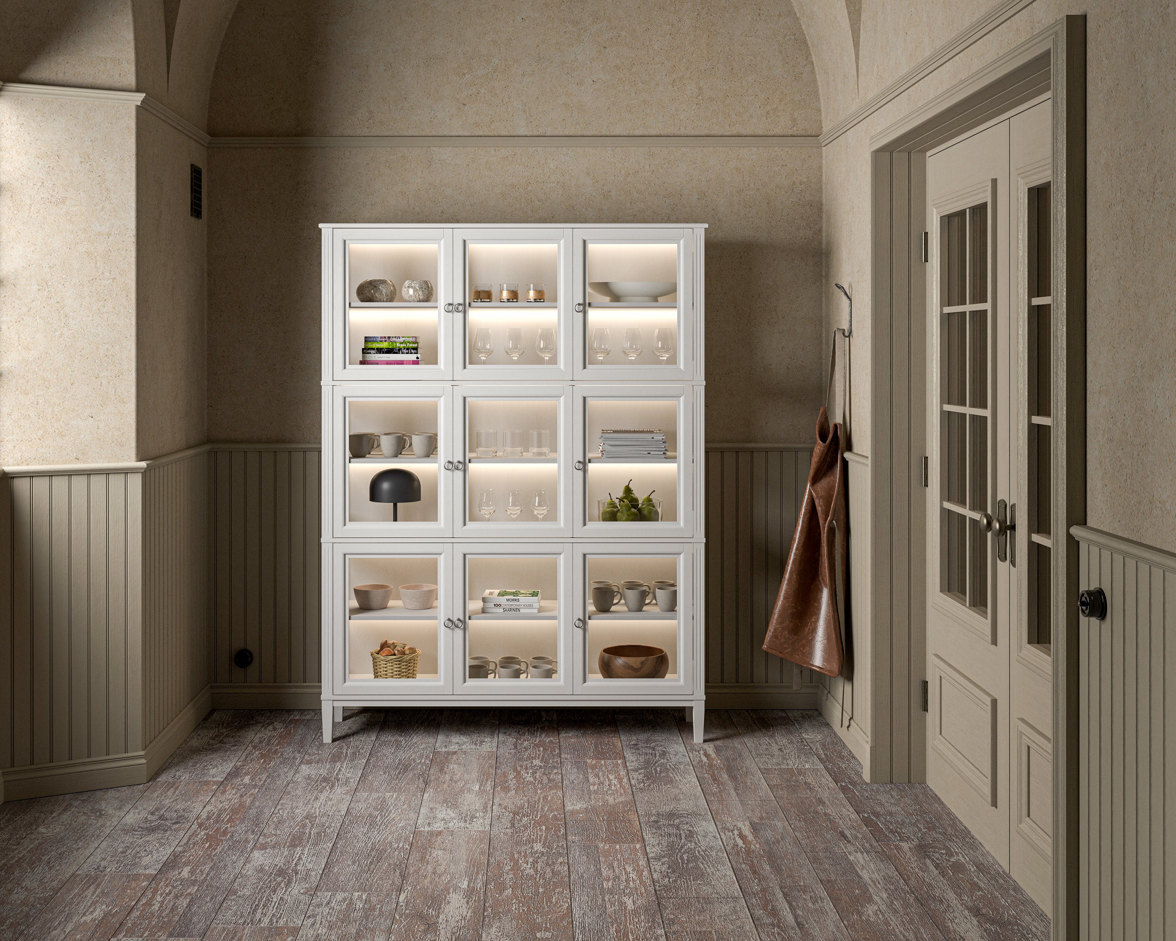 Stockholm 2.0 Display Cabinet is a new addition to the series and comes in several different heights. This cabinet consists of 3x3x3 doors. The display cabinet accommodates your most beautiful items, offering both good storage and an elegant detail to your home. Created with durable materials and craftsmanship to adorn your home for a long time to come