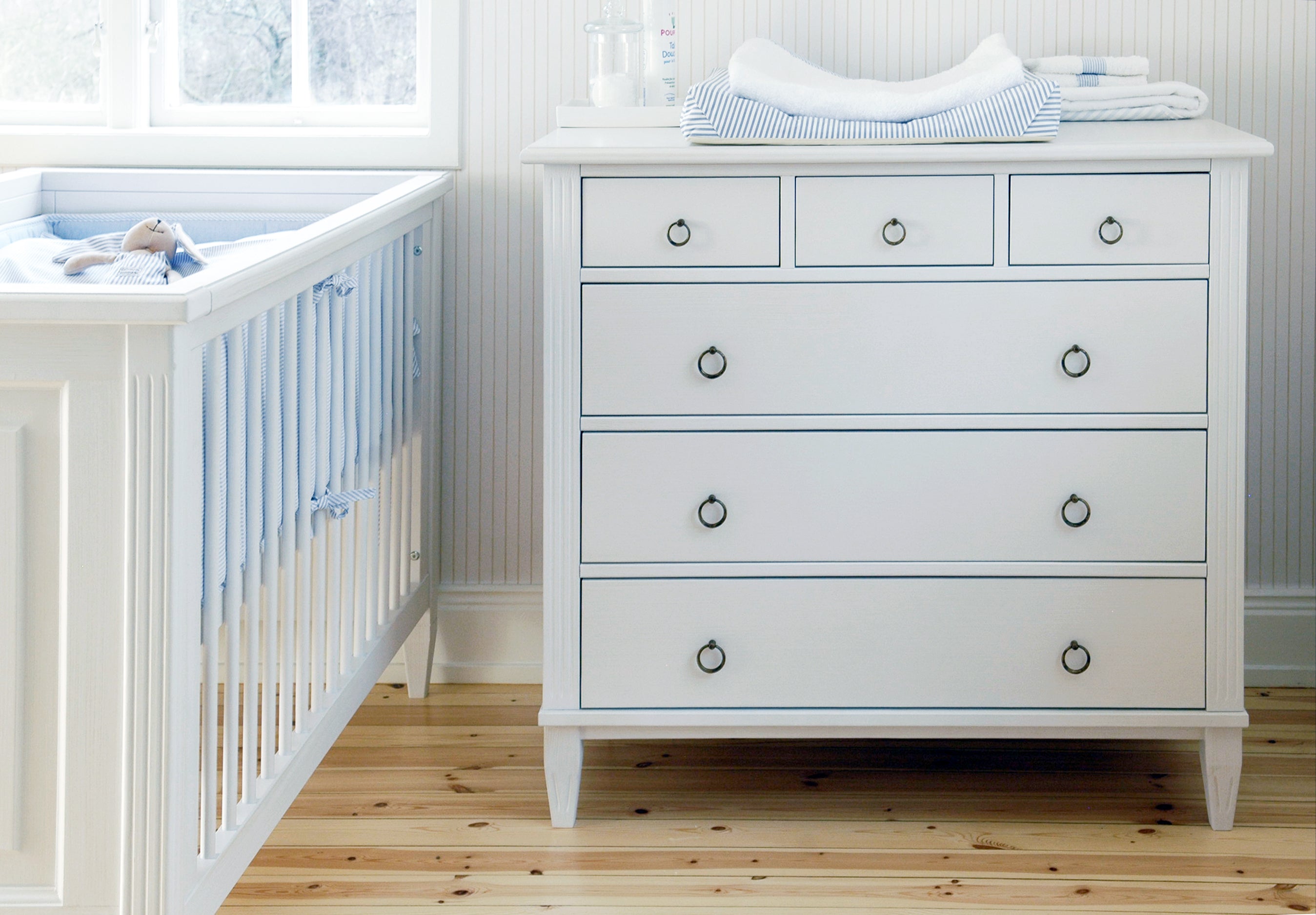 Stockholm desk with three drawers is an elegant desk with three drawers. The desk is offered in three colours Whitewash, Grey and Black. Feel free to complete with a comfortable Brooklyn chair.