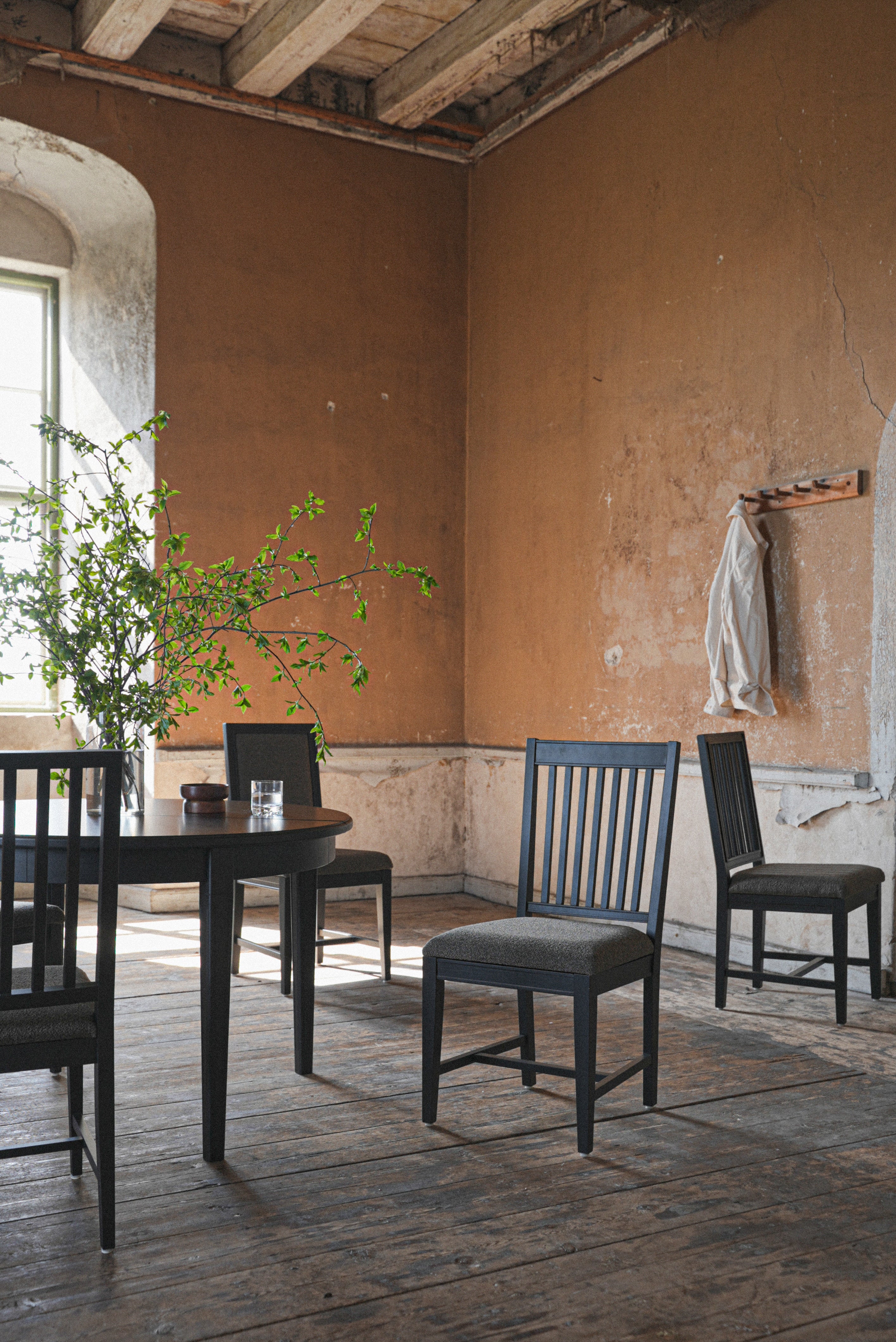 Utö 2.0 is a neater version of our classic chair with slightly angled wooden back, wide backrest and upholstered seat. The chair fits nicely with our tables in the Stockhom and Stockholm 2.0 series as it comes in the colours Whitewash, Grey and Black.